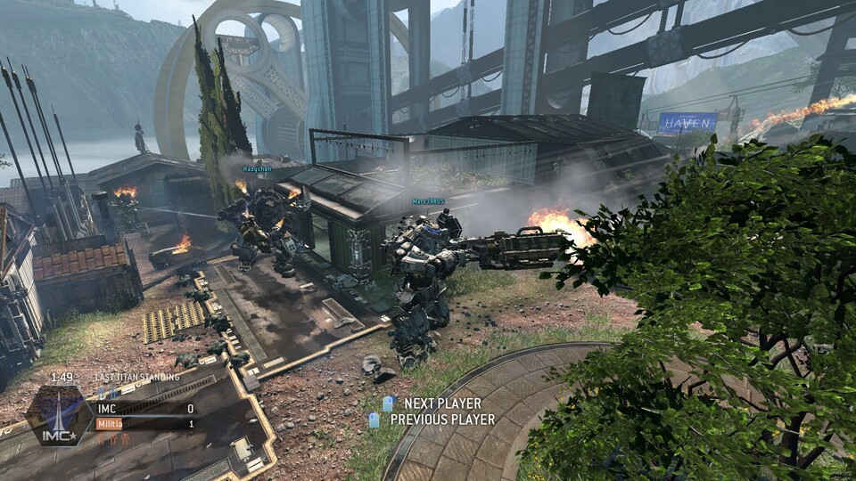 IMC und Miliz machen Urlaub - das möchte man bei der Map Haven meinen. Denn gekämpft wird, ähnlich wie bei der Karte Hainan Resort aus Battlefield 4, um ein Komplex aus Luxushotels. Dabei erinnert das Map-Layout an der aus dem Hauptspiel bekannten Karte Corporate mit viel Platz für Titanen außerhalb der Gebäude, während die Piloten auch in den Innenräumen relativ viel Freiheit bei den Laufwegen genießen.