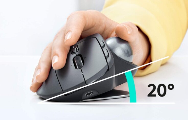 Trackball als Antidot zum Mausarm? Als Gegenmittel gegen den Mausarm wird allgemein die Vertikalmaus empfohlen – aber auch Trackball-Mäuse können hilfreich sein. Beispielsweise die von mir genutzte MX Ergo von Logitech verfügt über eine magnetische Bodenplatte; diese lässt zwei unterschiedliche Positionen zu.
