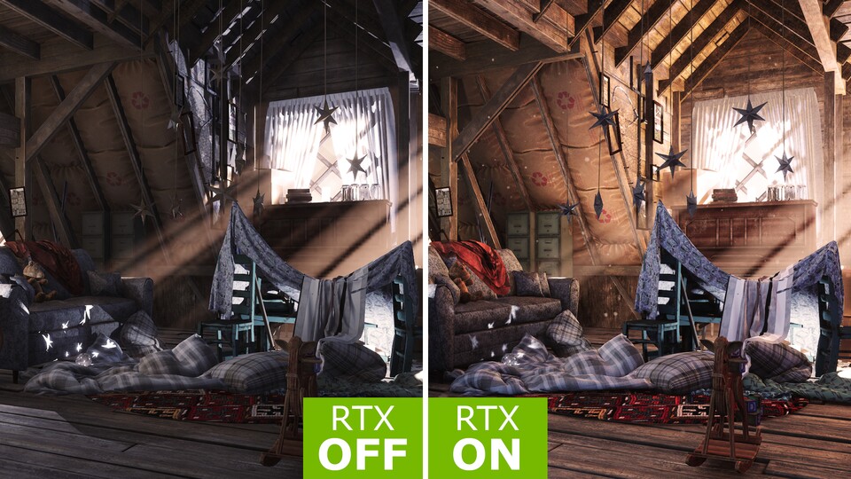 Worum geht's? Wer sich die knapp 750 MByte große Demo herunterlädt, kann in der Rolle eines kleinen Mädchens einen düsteren Dachboden erkunden. Hier kommen einige der ziemlich beeindruckenden Raytracing-Technologien besonders gut zur Geltung.