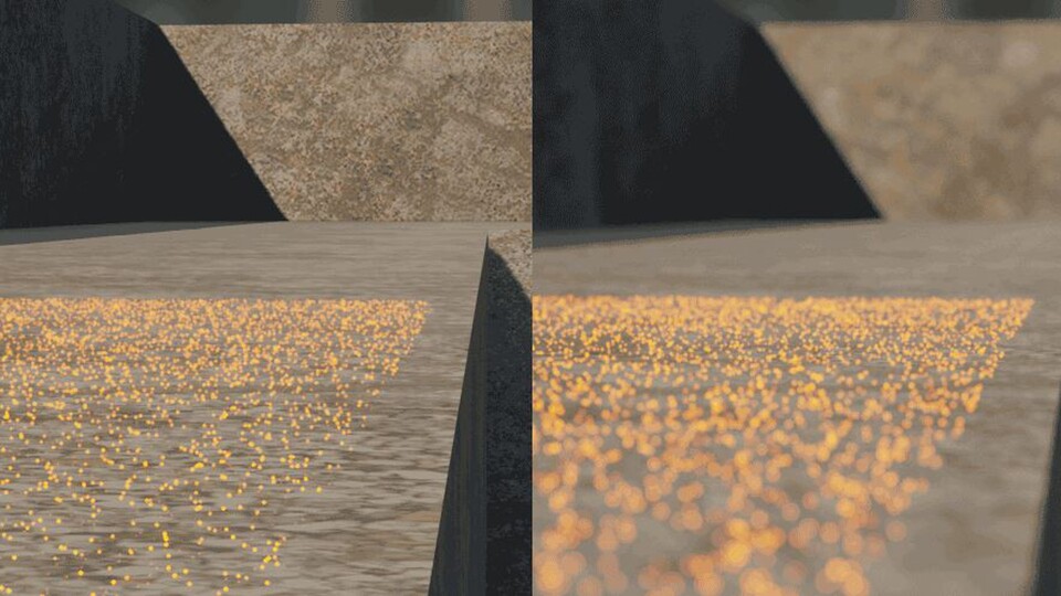 Die Technik verbessert zusätzlich den indirekten und direkten Schattenwurf und lässt die Schatten je nach Lichtintensität weicher erscheinen. Daneben beinhaltet die Engine jetzt auch einen neuen Tiefenunschärfe-Effekt. »Particle Depth of Field« ermöglicht es den Bildfokus für einzelne Partikel zu verändern.