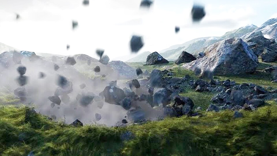 Bislang standen vor allem die beiden neuen Features Nanite und Lumen im Zentrum der Aufmerksamkeit, wenn es um die Möglichkeiten der Unreal Engine 5 ging. Das Video von Joe Garth dreht sich um zahlreiche physikbasierte Prozesse, etwa Wind, die Simulation von Wolken und die Zerstörung des Terrains.