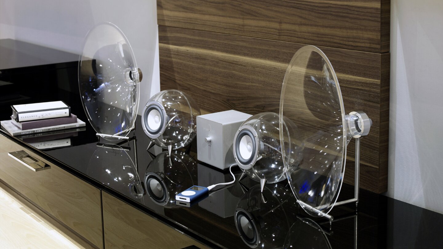 Wieso sind Hersteller da nicht schon viel eher drauf gekommen? Bei Fernsehern hat man es schließlich auch geschafft. Durchsichtige Lautsprecher, die den Raum nicht erdrückend eng wirken lassen wie ihre Kollegen.