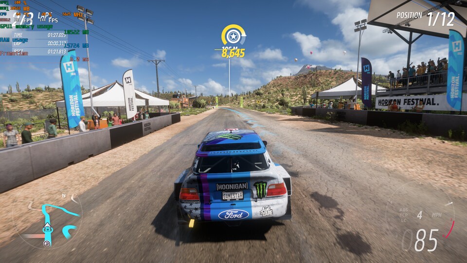 Auch hier profitiert die Bildrate deutlich vom Zuschalten von FSR 2.2: Selbst in 4K konnte ich einen durchschnittlichen Leistungszuwachs von ungefähr 29% ohne Raytracing messen. Und mit Raytracing waren gute 23% mehr FPS drin. Weder beim Fahren, noch beim gemütlichen Cruisen durch die Open-World konnte ich einen Unterschied zwischen nativ berechnetem Bild und per FSR 2.2 hochskaliertem Bild erkennen.