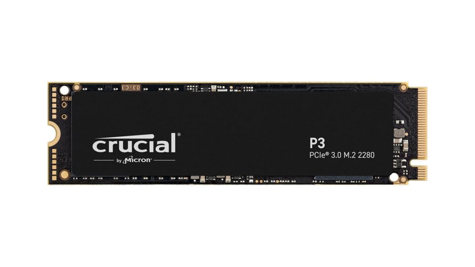 Einer der beiden NVMe Steckplätze des ASUS Prime B550M-K ist ein PCIe 4.0 Steckplatz, der andere ein PCIe 3.0 Steckplatz. Eine preiswerte PCIe 3.0 SSD, mit der ihr, dank Rückwärtskompatibilität, bei Bedarf beide Steckplätze belegen könnt, ist die P3 von Crucial mit 1TB Speicherplatz.
