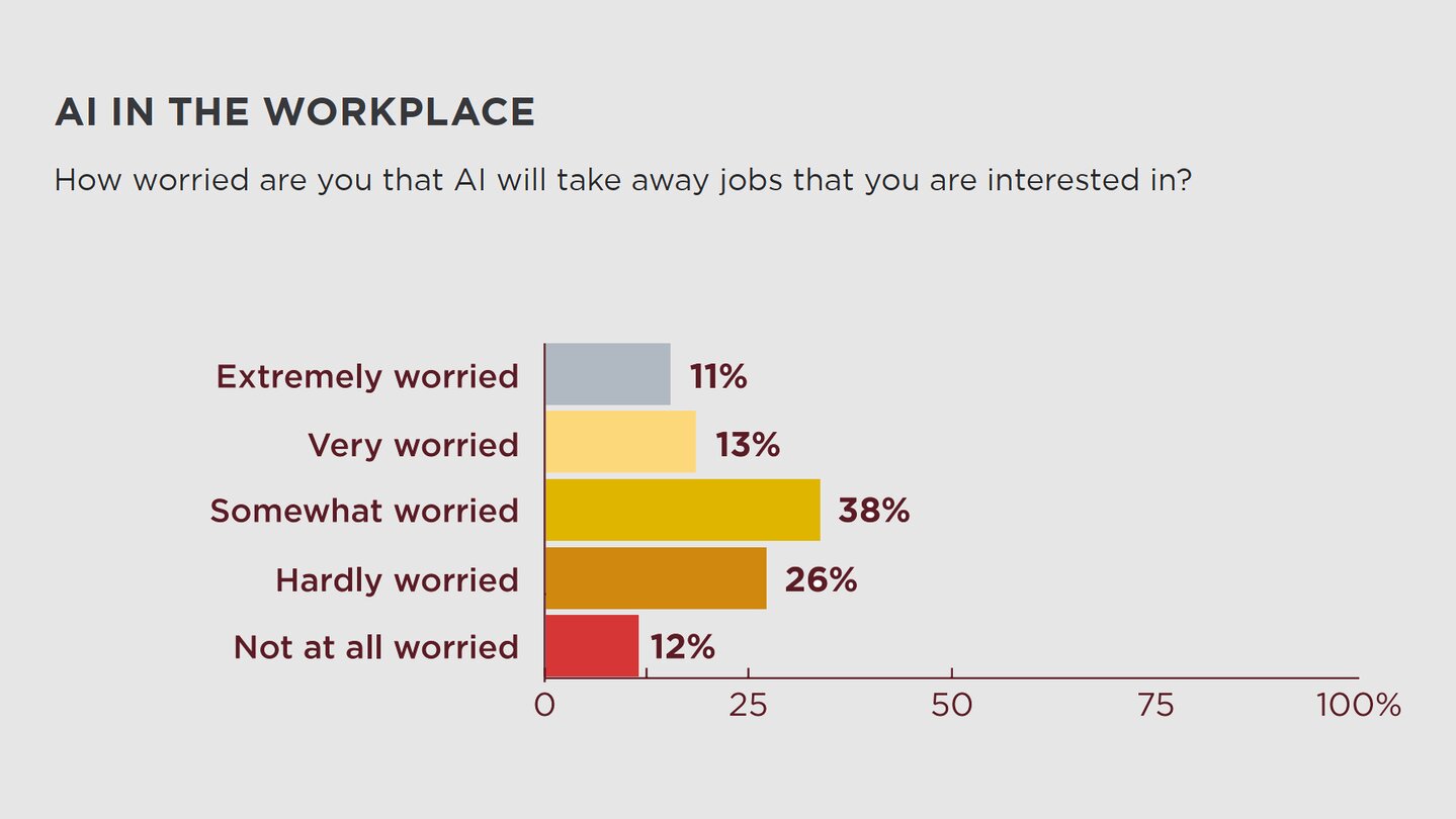 Die Umfrage selbst stellt allerdings keinen Zusammenhang zwischen den bevorzugten Arbeitgebern der jungen Menschen und ihren Sorgen vor dem Wegfallen von Jobs durch KI her.