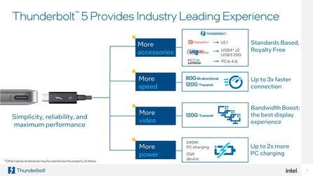 Intel schaltet mit Thunderbolt 5 mal eben zwei Gänge hoch. Die wichtigste Neuerung ist die bidirektionale Bandbreite von 80 Gbit/s. Doch das ist noch nicht alles.