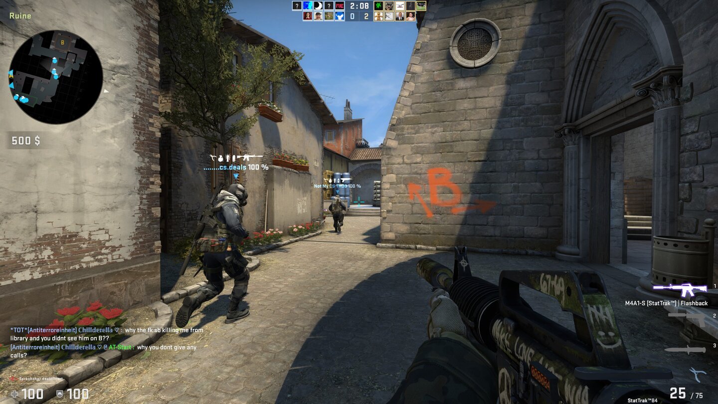 - Ein Manko: Valve hat zwar kürzlich die Sichtbarkeit von Spielfiguren verbessert, dennoch herrschen weiterhin eher geringe Kontraste zu den Map-Texturen. Das sorgt mitunter dafür, dass wir geschickt positionierte Feinde nicht schnell genug erkennen.