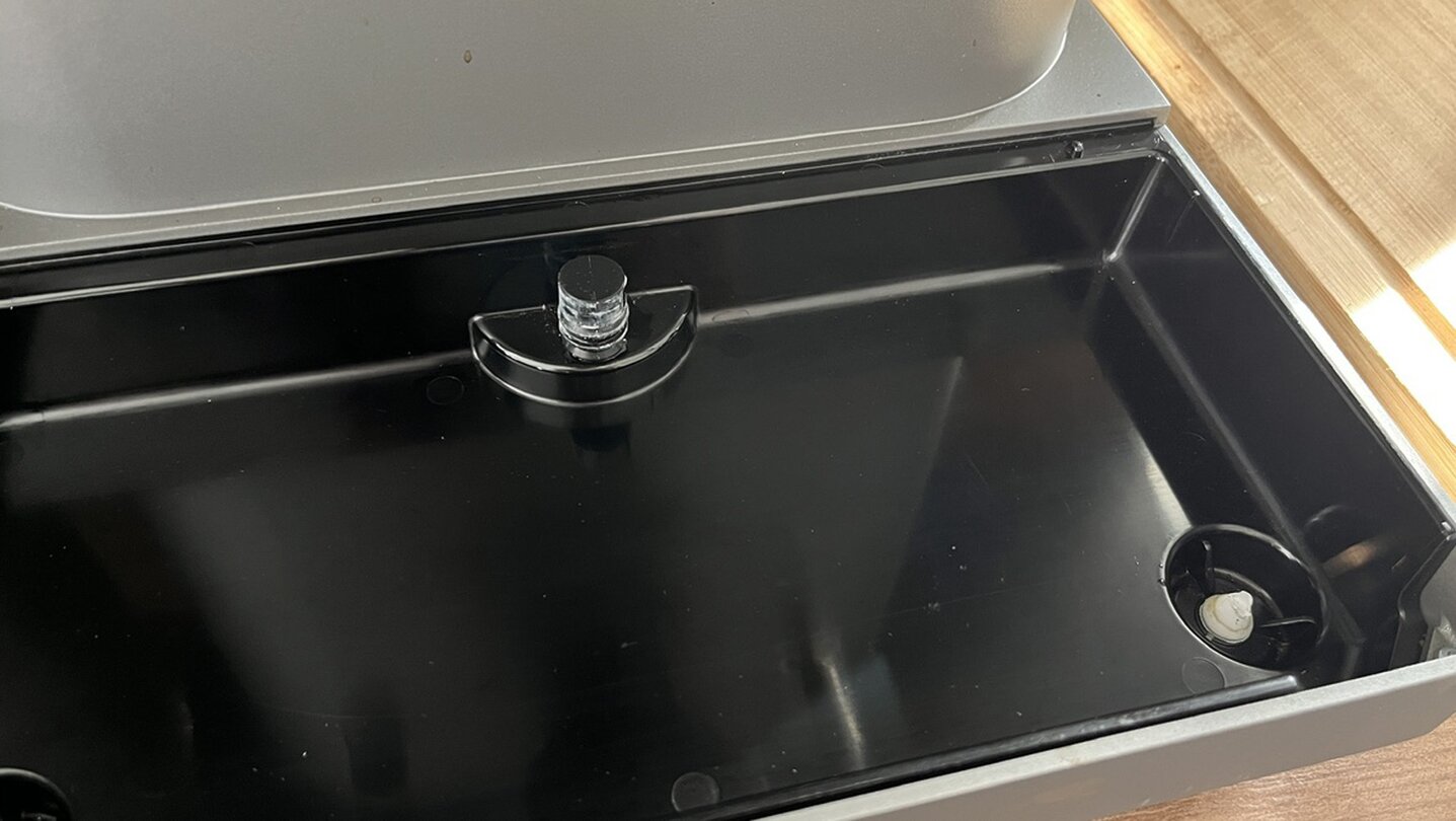 - Die Ergonomie: Der Wasserauslass für Americanos oder Tee sitzt weit hinten. Wenn man die Tasse nicht exakt platziert, landet das Wasser in der Abtropfschale.