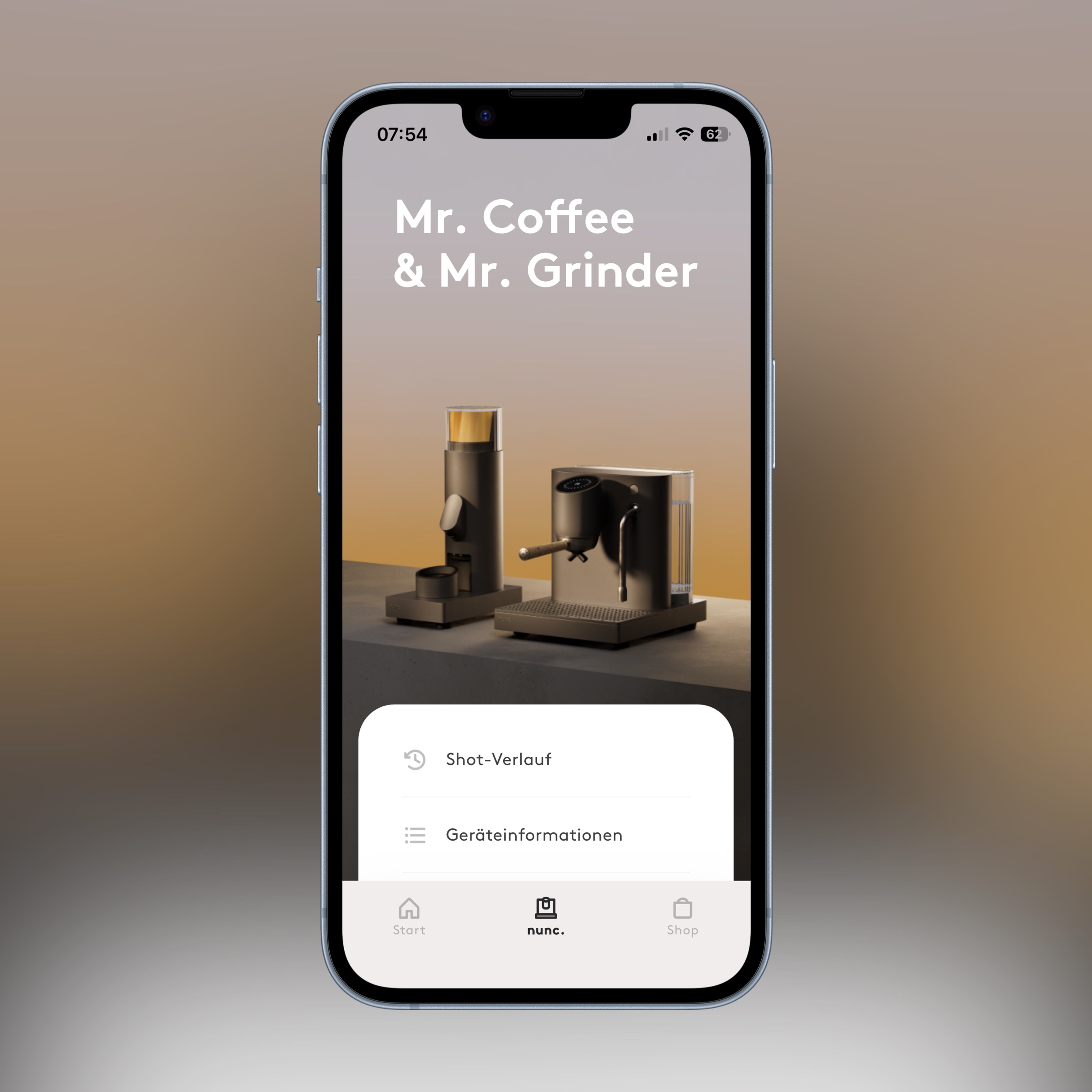 Die nunc ist ein Siebträger-System mit integrierter Mühle, entwickelt von einem jungen Unternehmen aus Konstanz am Bodensee, gebaut in der Schweiz. Was sie von allem anderen unterscheidet, ist das Zusammenspiel aus Highend-Hardware, smarter Software und einem eigenen Bohnen-Ökosystem.