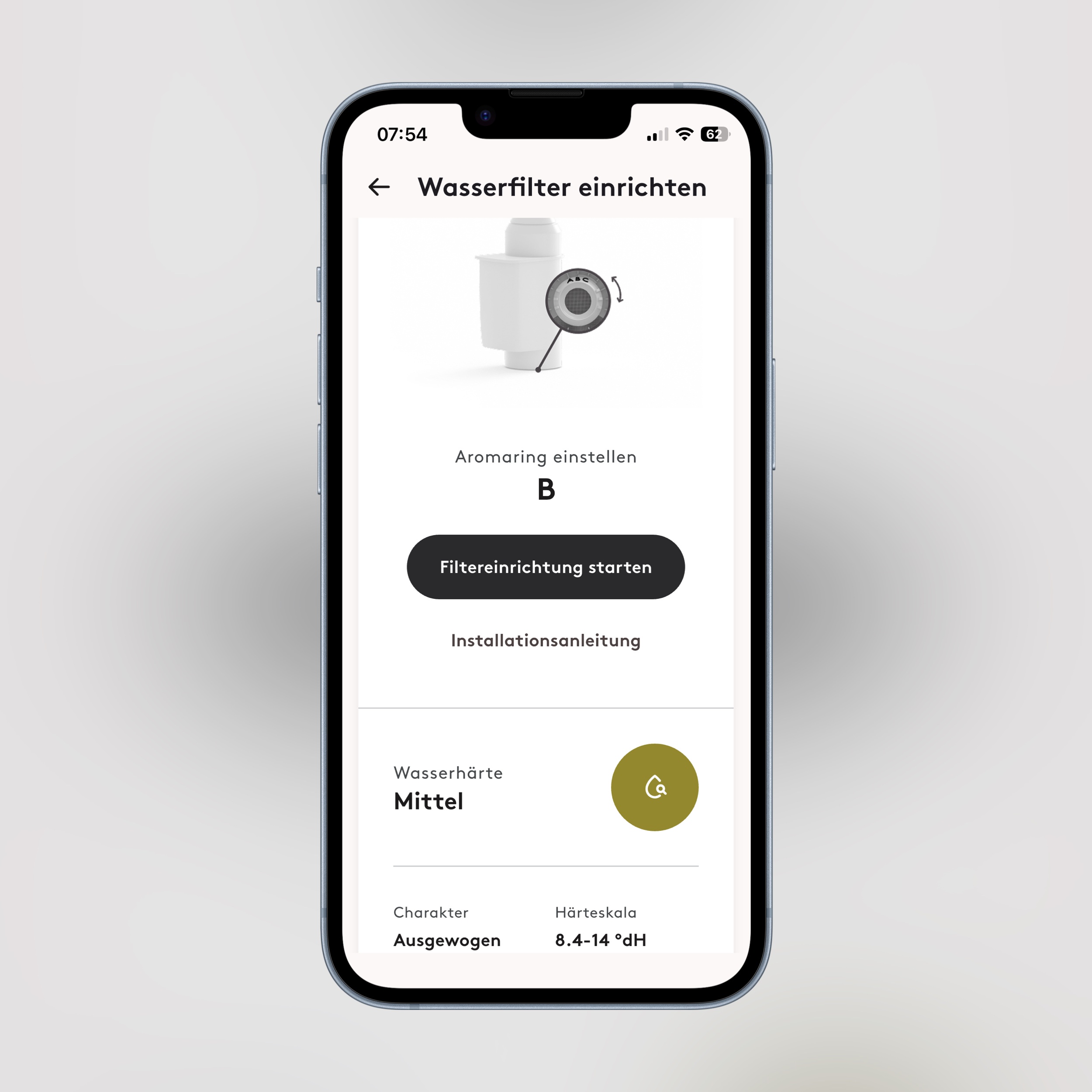 Übrigens: Zur Einrichtung gehört auch das Einstellen des Wasserfilters – dafür liegt ein pH-Streifen bei, mit dem man die eigene Wasserhärte misst. Klingt banal, ist aber wichtig, schließlich besteht der fertige Kaffee zu 99 Prozent aus Wasser.