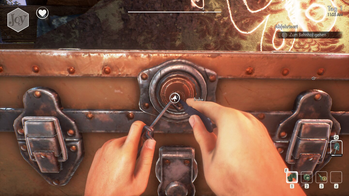 Im Test brauchten wir etwa zwingend Nähzeug für einen Blaumann - über eine gute Stunde mussten wir nach dem vermaledeiten Nadeln suchen. Apropos Nadeln: Nur aus Bobby-Nadeln lassen sich Dietriche bauen, die man für optionale Truhen oder Türen braucht, aber eben manchmal auch, um in der Story weiter zu kommen. Keine Nadeln, keine Geschichte!