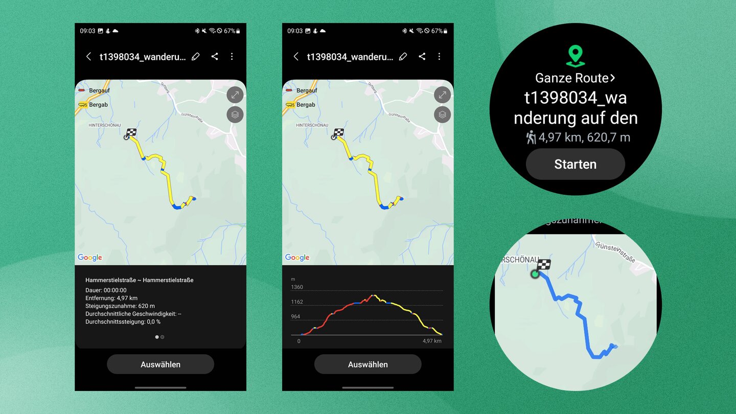 Die Vorgehensweise ist denkbar einfach. Ich lade die GPX-Datei auf mein Handy und importiere diese in die Health-App von Samsung. Andere Apps wie Komoot und Smartwatches von Garmin (zum Beispiel) sind ebenfalls in der Lage, das Dateiformat auszulesen.