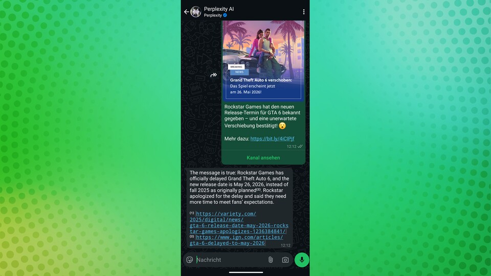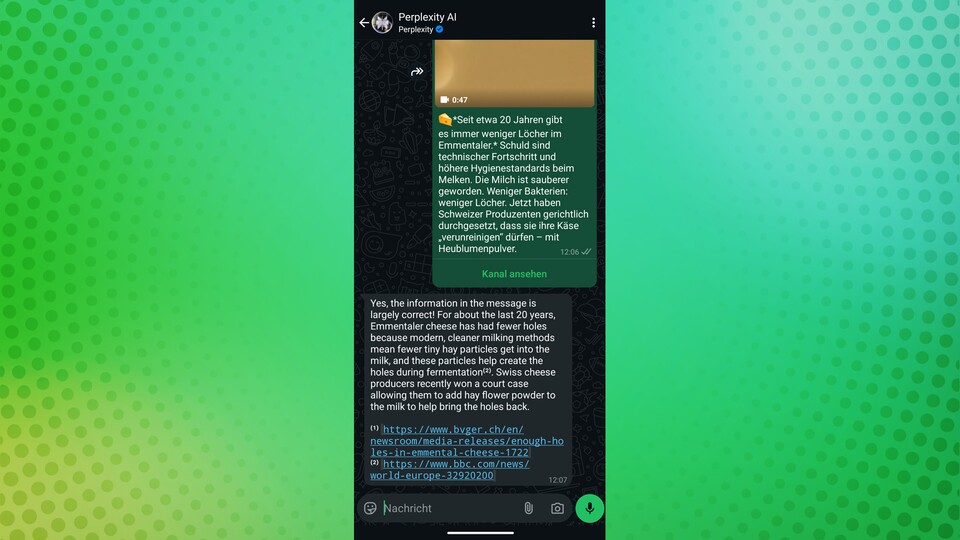 Dennoch könnt ihr grundsätzlich auch Nachrichten aus anderen Messengern kopieren und Perplexity AI auf WhatsApp zur Überprüfung geben.
