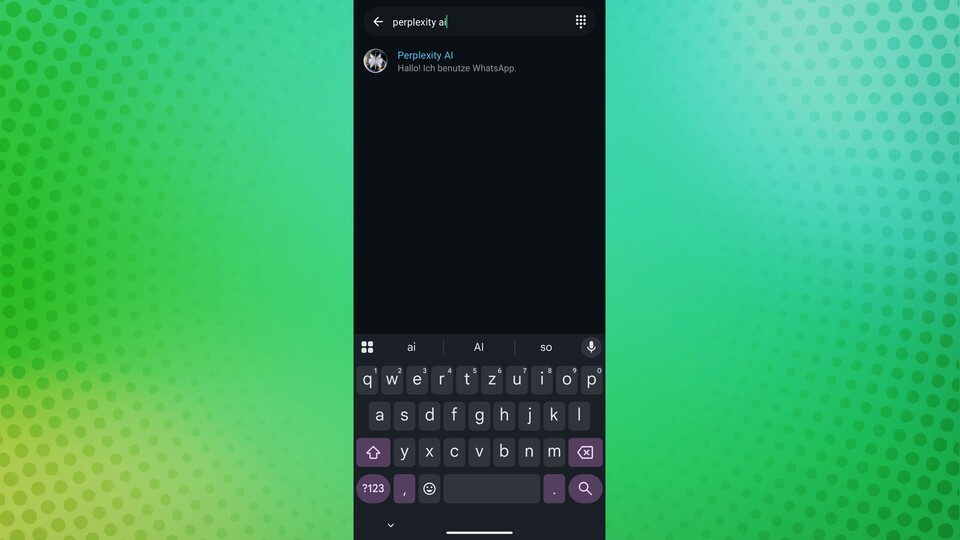 - Wählt Perplexity AI (oder unter welchem Namen ihr die KI in euren Kontakten gespeichert habt) aus.