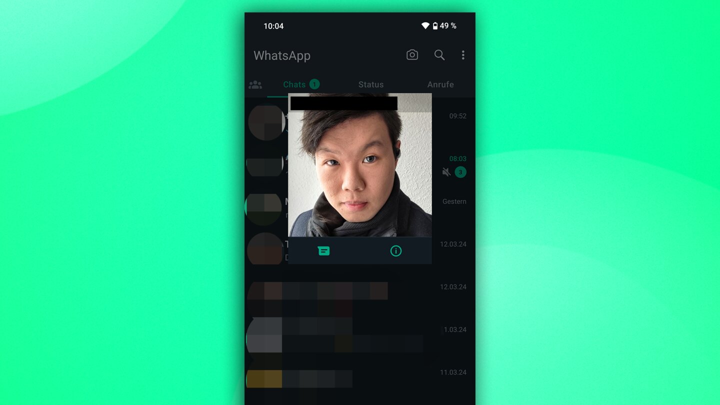 Es scheint, als würde das Update also in Wellen ausgerollt werden. Tippt man in der Chatübersicht auf das Profilbild von einem Kontakt, wird nur ein kleines Vorschaubild angezeigt. Hier funktioniert die Screenshot-Funktion noch.