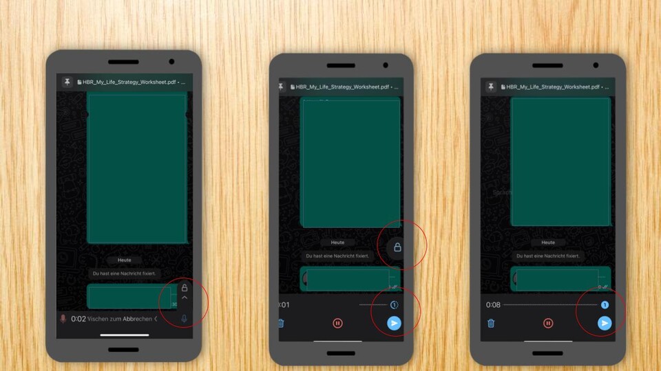 Wenn ihr nicht wollt, dass eure Sprachnachrichten dauerhaft gespeichert werden können, könnt ihr sie wie Bilder für die einmalige Nutzung verschicken.