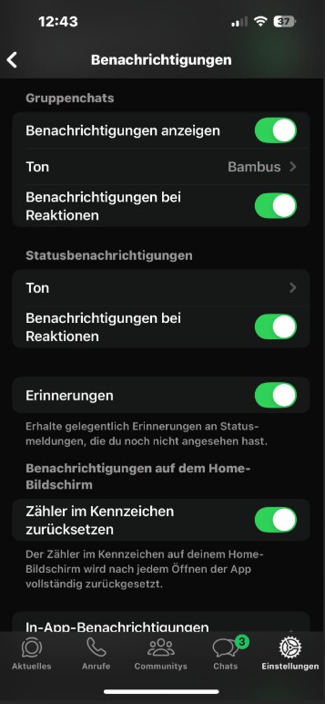 Ein neues Update soll das ändern. Wie WABetaInfo berichtet, gibt es in der WhatsApp-Beta eine neue Einstellung, die euch an ungelesene Nachrichten erinnern soll. Der zugehörige Button wird mit der Beta-Version 2.24.25.29 ausgerollt und ist zu finden unter Einstellungen → Benachrichtigungen.
