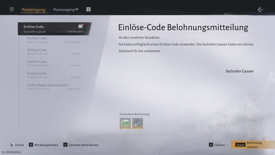 - Öffnet den Posteingang im Spiel und nehmt eure Belohnungen an.