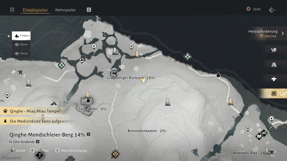 Zunächst müsst ihr in der Qinghe-Region zum Glückseligen Rückzug reisen. Falls ihr das Gebiet noch nicht freigeschaltet habt, spielt die Hauptstory weiter, ihr kommt recht schnell an den Punkt in der Story.