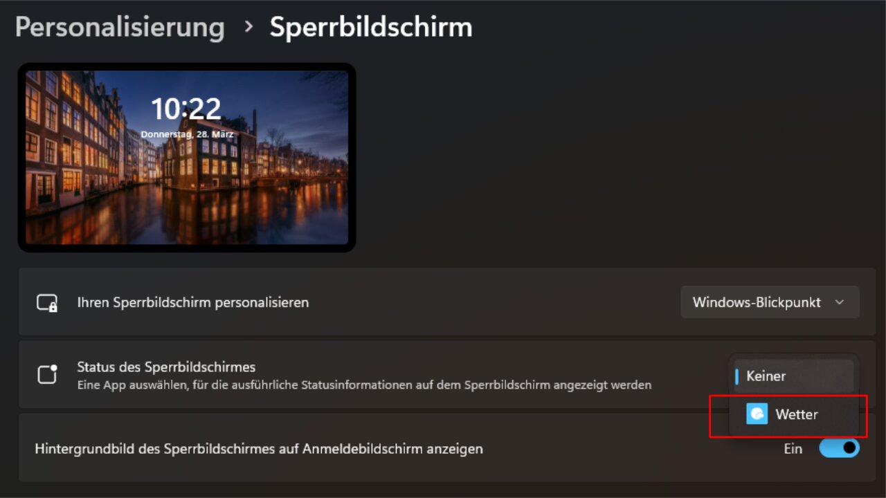Auch hier müsst ihr wieder über die Personalisierungs-Einstellungen gehen, um das Feature zu aktivieren - in diesem Fall über den »Sperrbildschirm«-Reiter.