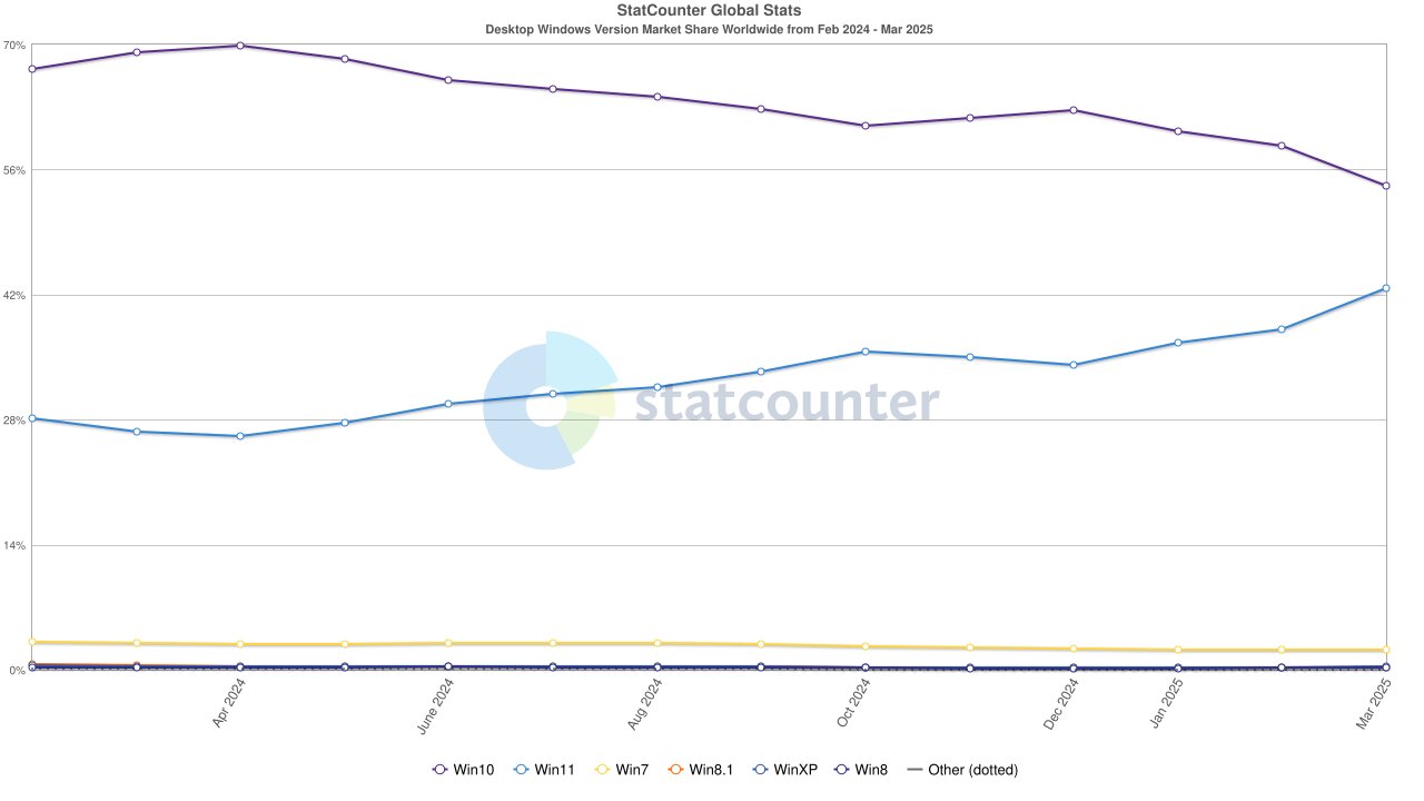 Sollte sich der Trend fortsetzen, könnte Windows 11 in den nächsten Monaten an Windows 10 vorbeiziehen.