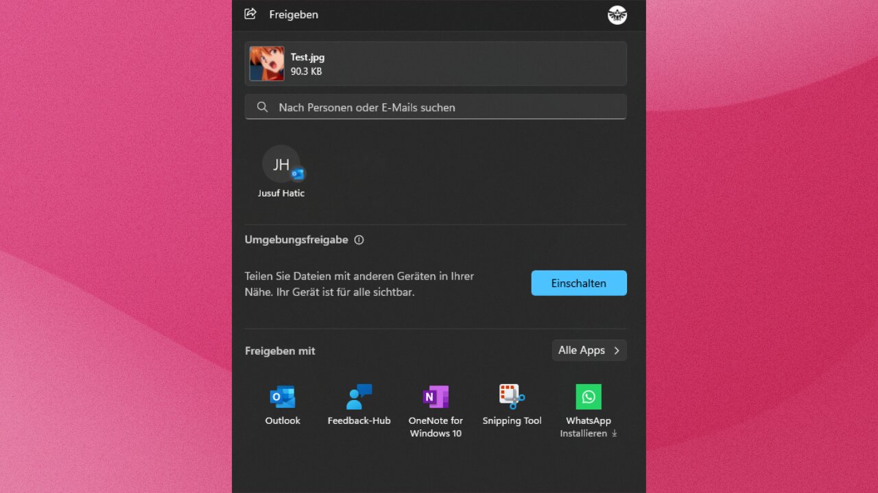 Mehr Freigabeoptionen: Über das Rechtsklick-Menü lassen sich Dateien in Windows 11 an Apps freigeben.