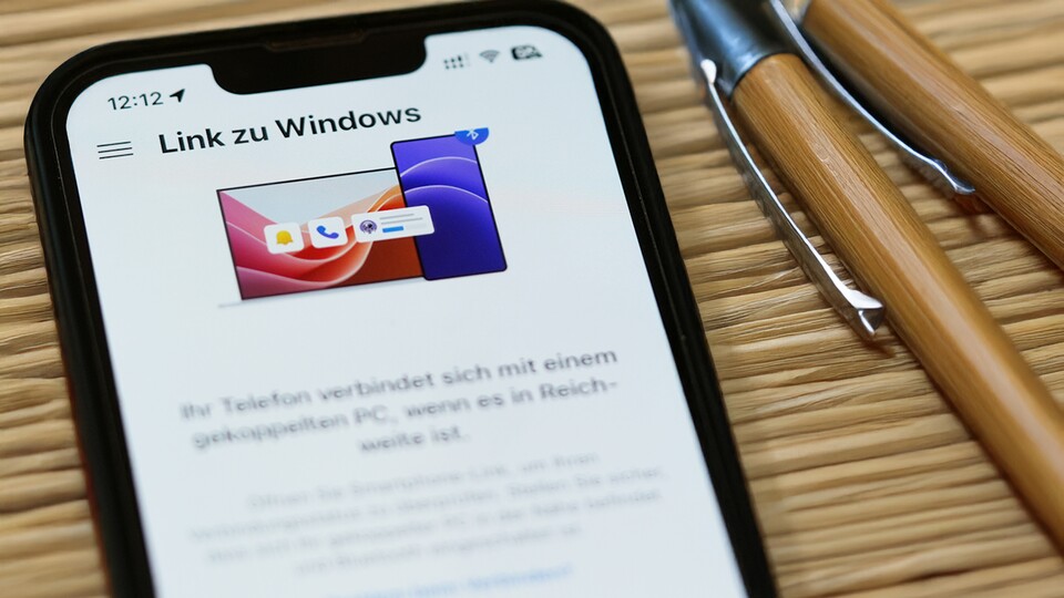 Die Daten-Übertragung zwischen PC und iPhone läuft über die kostenlose »Link zu Windows App«. Ist diese installiert, muss das Smartphone nur mit dem Windows-PC über Bluetooth gekoppelt werden.