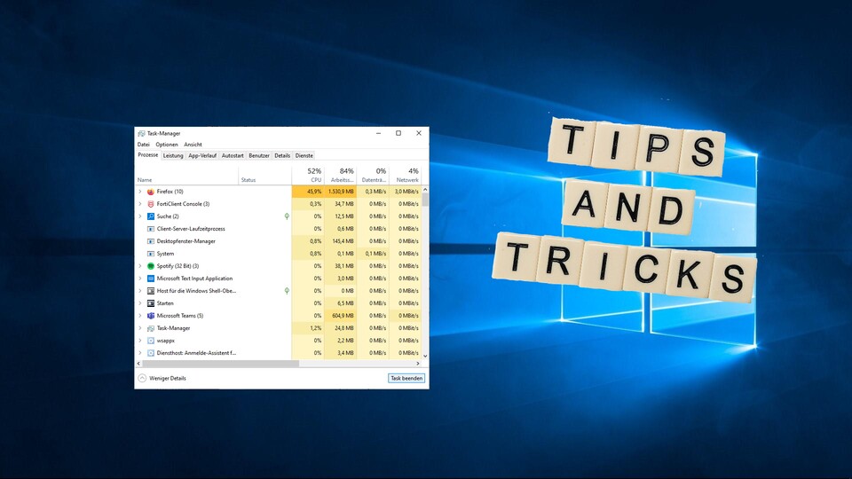 Windows-Nutzer verwenden den Task Manager vor allem, wenn einzelne Programme oder Spiele für Probleme sorgen. Ein paar Klicks reichen aus, um zickige Software zu beenden sowie CPU- und RAM-Last im Auge zu behalten.