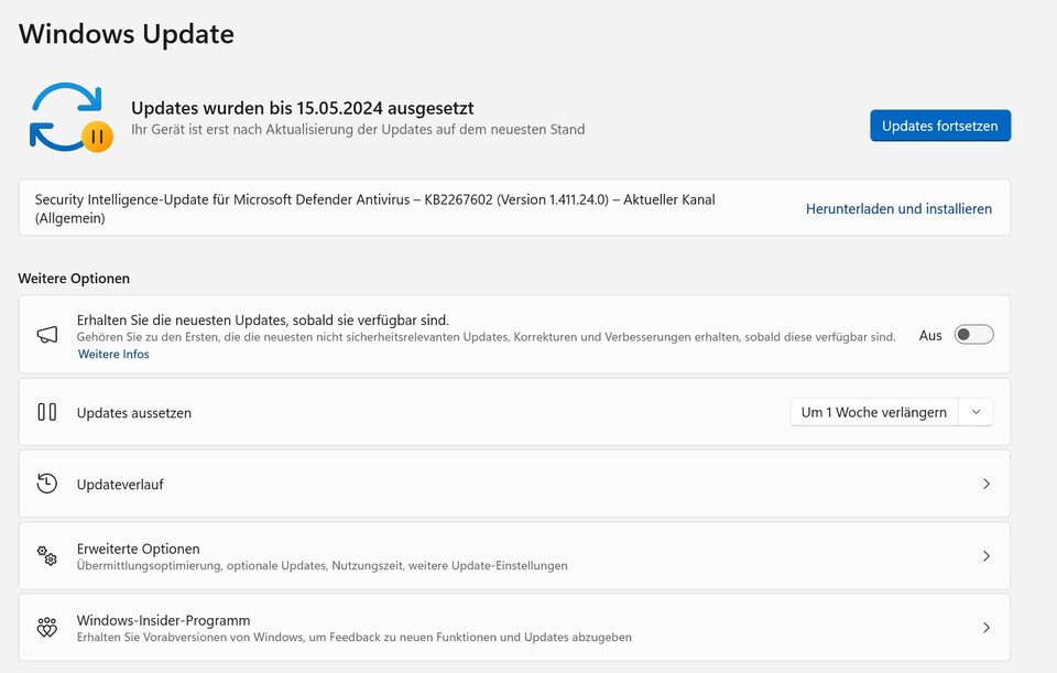 Jetzt habt ihr eure Updates für einen gewissen Zeitraum pausiert.