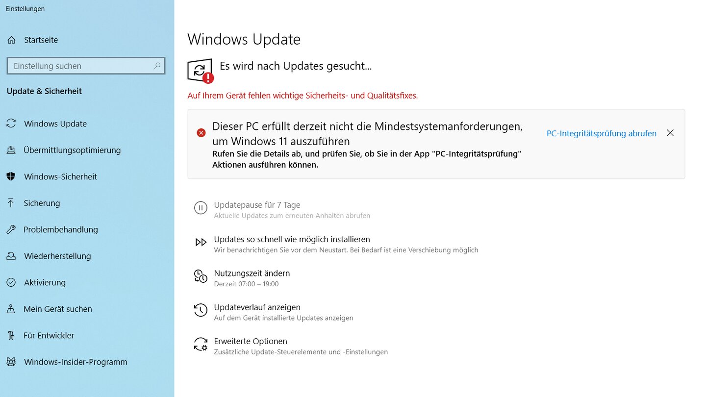 Weniger versierte Nutzer wissen das aber nicht und Windows verrät es auch nicht. Damit stehen sie dann vor einem potenziellen Problem, da der PC oder Laptop auf viele aktuelle Sicherheitsupdates verzichten muss.