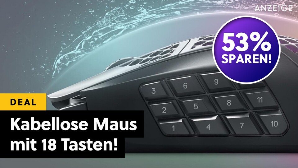 Ihr sucht eine Gaming-Maus, die sich ideal für MMOs, MOBAs und Shooter eignet? Die kabellose SteelSeries Aerox 9 bietet euch 18 Tasten, eine beeindruckende Akkulaufzeit von bis zu 180 Stunden und das alles bei einem ultraleichten Gewicht von nur 89 Gramm. Aktuell gibt es den vielseitigen Gaming-Nager bei Amazon mit einem imposanten Rabatt von 53 Prozent im Black Friday-Angebot!