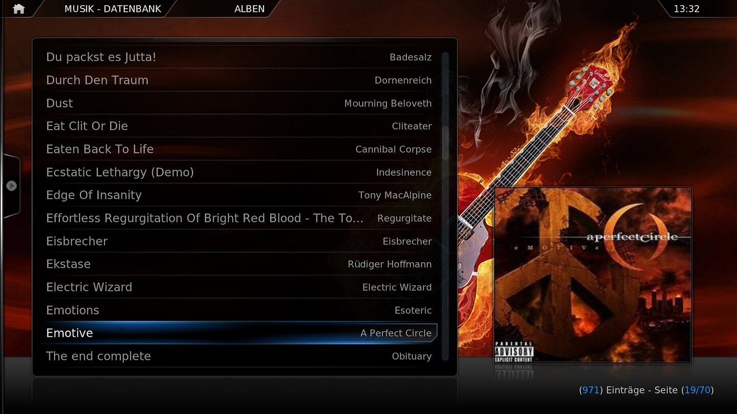Musik fügen Sie ebenso einfach hinzu wie Bilder oder Filme. Auch hier wählen Sie einen Ordner aus, alle Unterordner werden automatisch in die Suche miteinbezogen. Wie bei Filmen können Sie einen »Scraper« bestimmmen, der Informationen zu Ihrer Musiksammlung einholt. Dies können Albumcover oder Bilder der Künstler sein, aber auch Texte zu Liedern oder Ähnliches. Wie bekannte Musikplayern, darunter Winamp, unterstützt XBMC verschiedene Visualisierungen, die wahlweise im Fenster oder im Vollbild laufen. Wenn Sie sich bei Feiern nicht ständig um die Musikauswahl kümmern möchten, bietet sich der »Party-Mode« an, ein intelligenter Shuffle. Hierbei werden nur Lieder durchmischt, die ähnlich klingen. So brauchen Sie keine Sorge zu haben, dass auf Hard-Rock ein Techno-Track folgt.