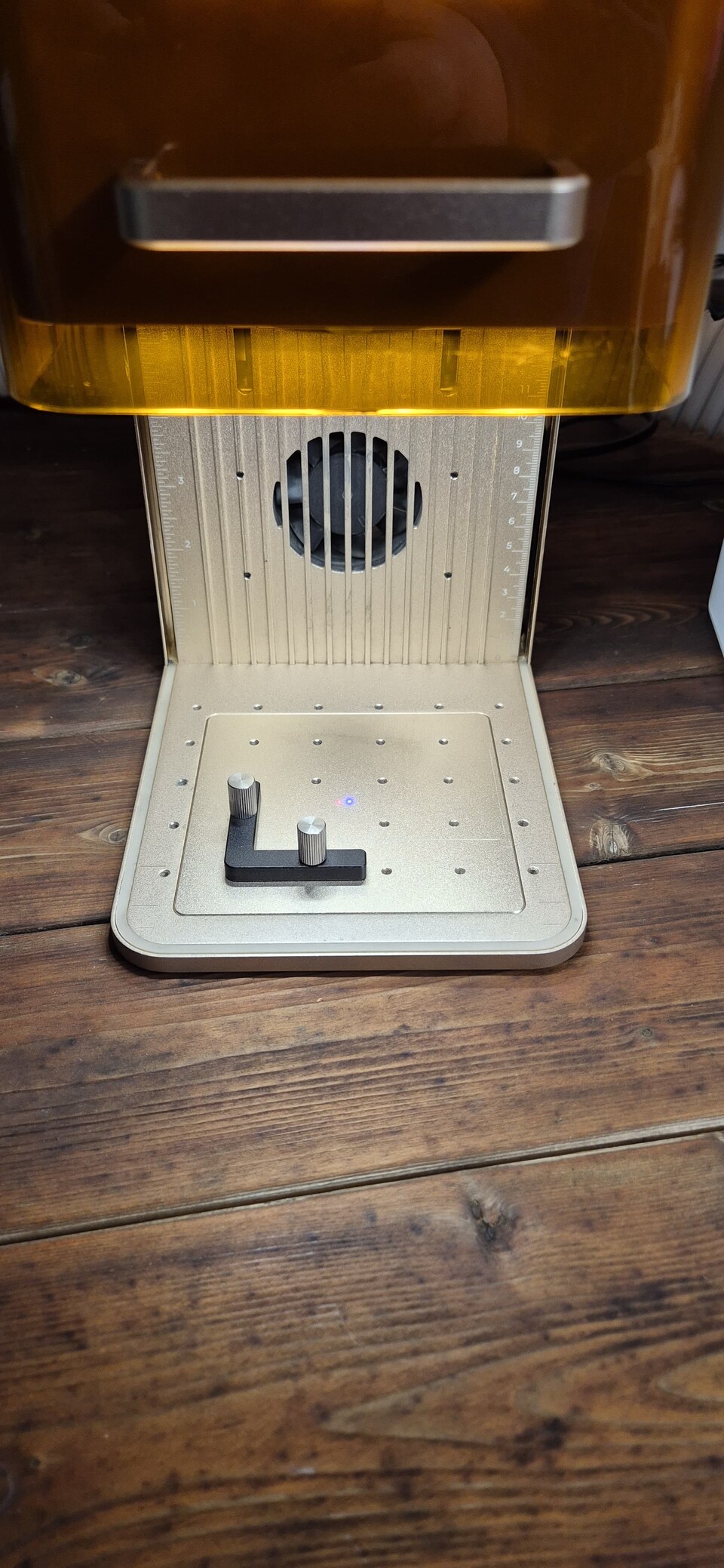 Beim F2 ist die Situation quasi das Gegenteil. Zwar schränkt mich die kleinere Arbeitsfläche deutlich bei dem ein, was ich gravieren möchte. Allerdings kann ich mich damit auf präzise Detailarbeit fokussieren. Schlüsselanhänger, Acrylgravuren und sogar Visitenkarten landen standardmäßig auf dem F2, weil ich das gewünschte Ergebnis deutlich schneller erreiche. Dabei hilft mir unter anderem die Kamera, die ich euch gleich noch genauer beschreibe.