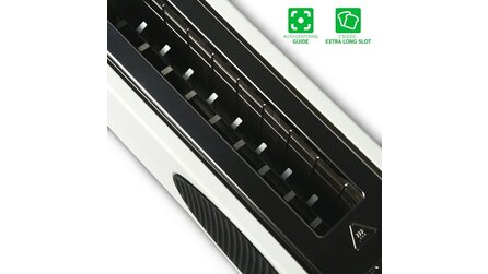 Das Gerät kann zwei Scheiben auf einmal toasten und brennt dabei das Xbox-Logo auf euer Brot. Praktischerweise gibt es eine Funktion für mehrere Profile. So können unterschiedliche Familienmitglieder oder Mitbewohner ihr Brot individuell toasten und müssen nicht jedes Mal Einstellungen ändern.