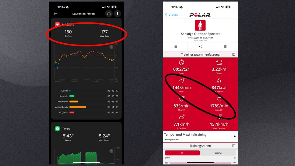 | Herzfrequenz im Schnitt | Max. Herzfrequenz | |