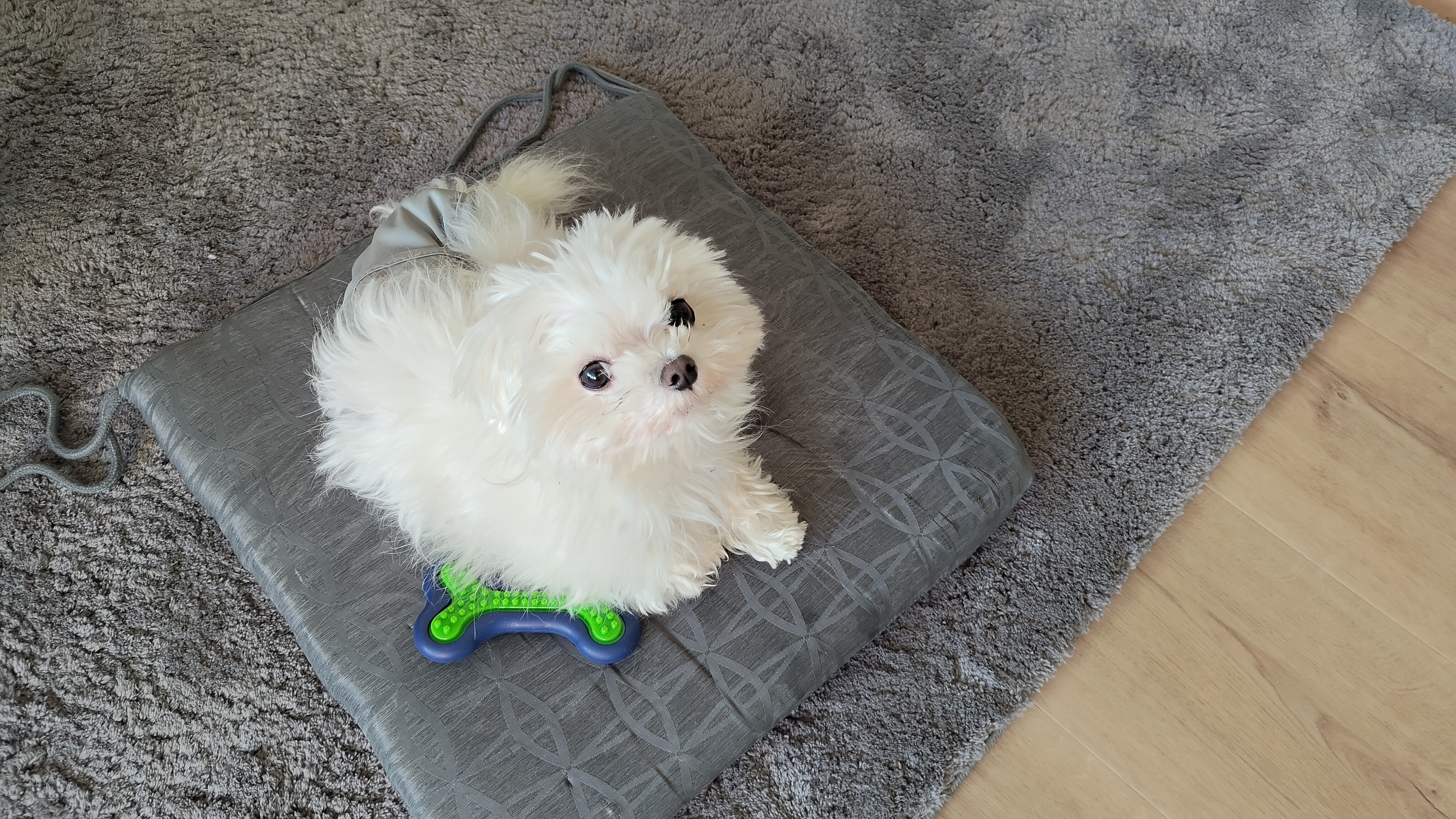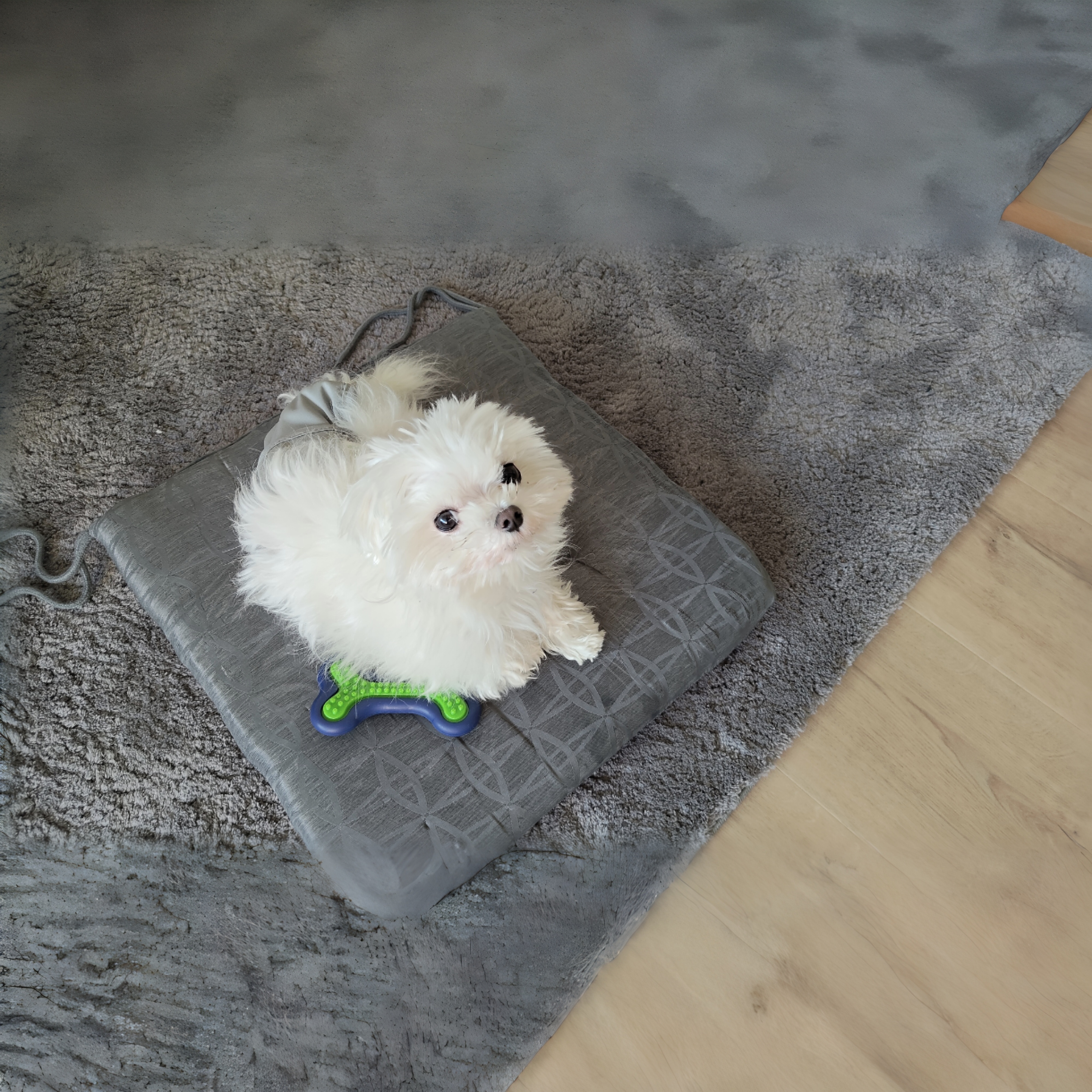 Bei diesem Foto ist ganz klar zu erkennen, wo die KI zusätzliche Bildinformationen generiert hat. Der Teppich sieht komplett anders aus und ist sogar seltsam beschnitten.