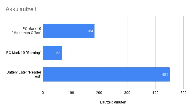 Dank seinem großen, rund 100 Wh großen Akku sind die Laufzeiten deutlich besser, als man es bei einem so leistungsstarken vielleicht vermuten würde.