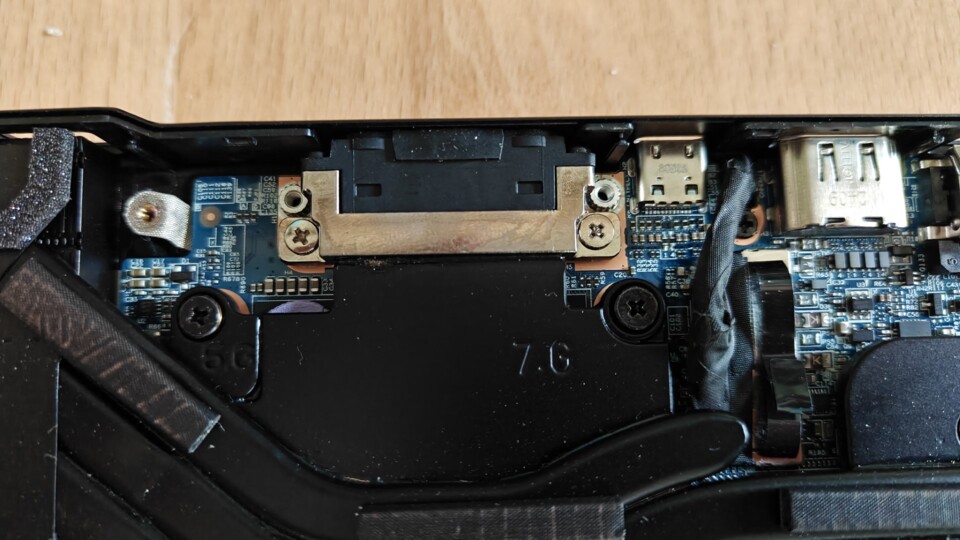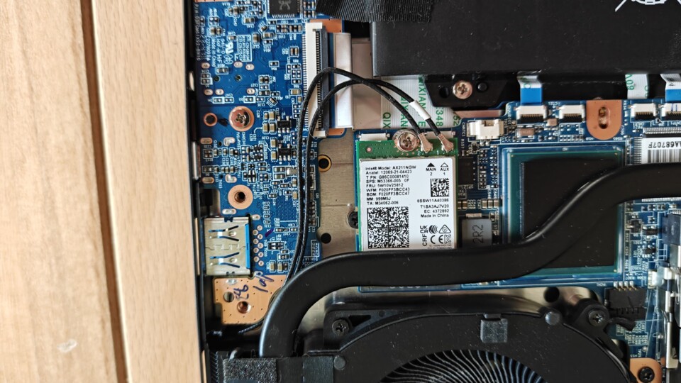 Ebenfalls unter einem solchen Blech befindet sich das gesteckte WLAN-Modul.