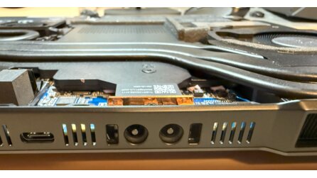 Anschließend können die Schläuche mit dem Notebook und Radiator verbunden werden. Auf der Seite des Radiators funktioniert das magnetisch, am Laptops besitzt der Anschluss zwei Haltenasen, die einrasten müssen. XMG gibt an, dass die Anschlüsse jeweils selbst abdichtend sind. Ich kann bestätigen, dass beim Entfernen der Schläuche bestenfalls ein kleiner Tropfen Flüssigkeit ausgetreten ist.