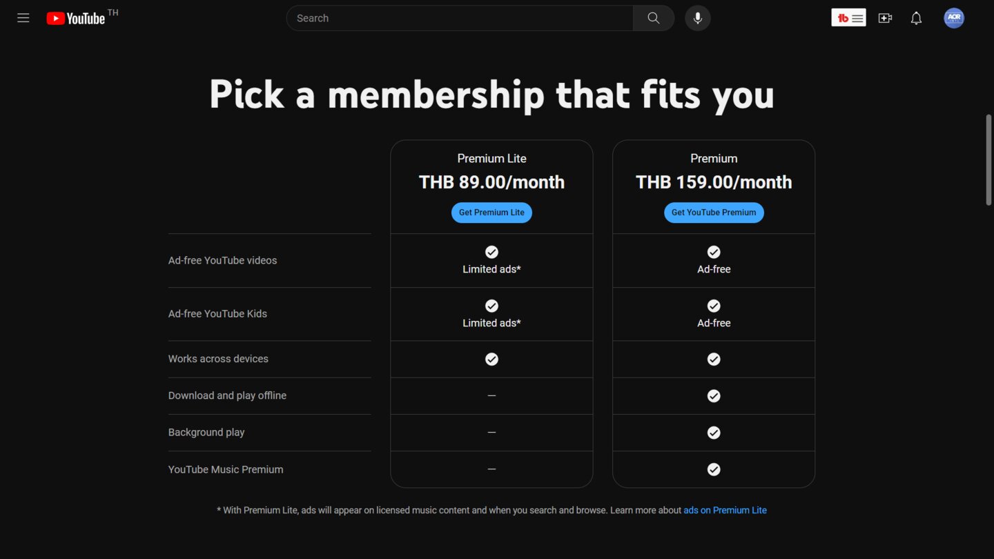 YouTube testet aktuell ein neues Premium-Lite in Thailand. Der Tarif ist günstiger als das gewöhnliche YouTube Premium, bietet allerdings kein YouTube Music, Hintergrundwiedergabe und Video-Downloads.
