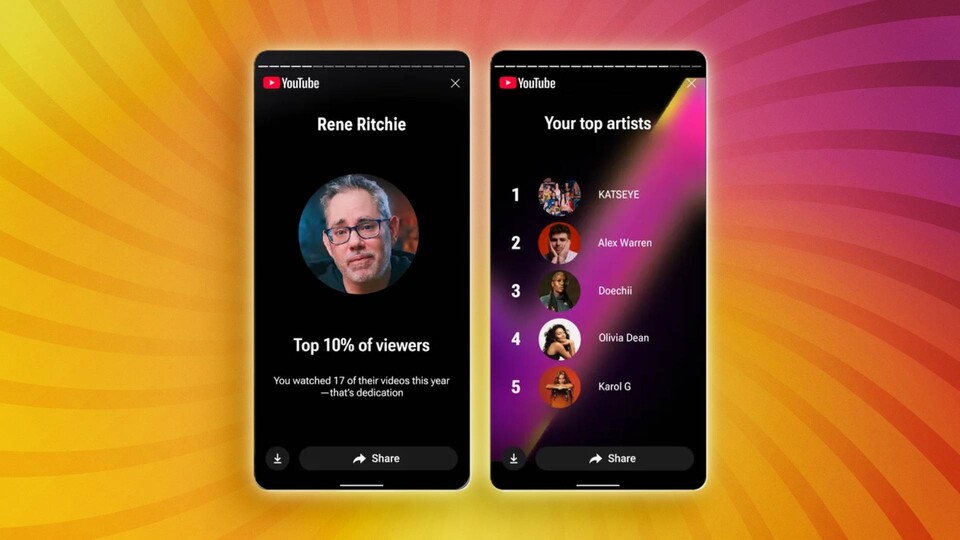 Wer YouTube Music nutzt oder generell viel Musik über YouTube hört, bekommt auch dafür gesonderte Statistiken mit Top-Artists und Ähnlichem. Zu guter Letzt werden die Nutzer noch anhand ihrer Daten in verschiedene Persönlichkeitsprofile einsortiert.
