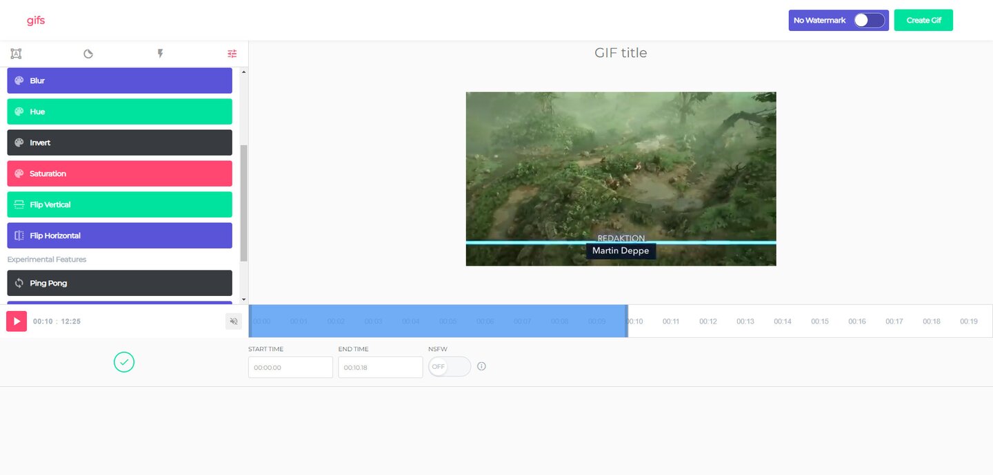 ein. Also zum Beispiel: https://www.GIFyoutube.com/watch?v=sjAoRkQSy8k&ab_channel=GameStar - Jetzt geht der Spaß erst so richtig los! Euer Video wird auf die Website gifs.com übertragen, wo ihr das gewünschte Ergebnis noch mit zahlreichen Optionen bearbeiten könnt. Neben der Dauer des GIFs könnt ihr auch Effekte hinzufügen oder das Bild zurechtschneiden.