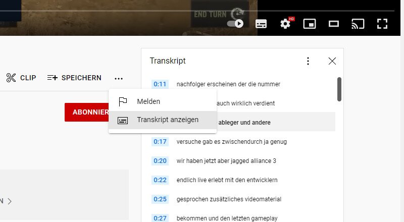 YouTube bietet euch bekanntlich die Möglichkeit, Videos automatisch übersetzen zu lassen. Außerdem kommt es oft vor, dass die Uploader auch handgefertigte Transkriptionen hinterlegen, die ihr euch während der Wiedergabe am unteren Rand des Players anzeigen lassen könnt.