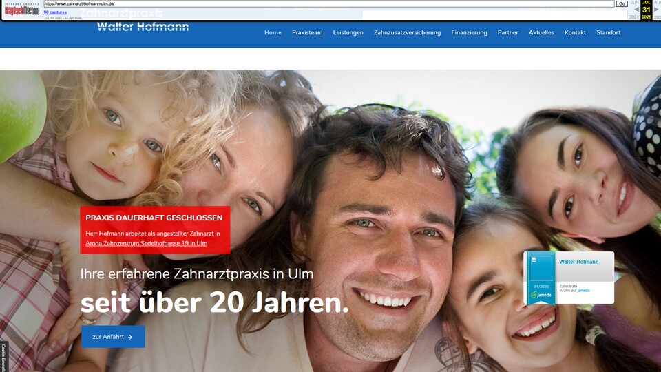 Dass eine ehemalige Zahnarzt-Webseite dafür genutzt wird, dürfte nur einen Grund haben: Die Domain existiert schon lange. Bei Archive.org liegt der erste Eintrag fast 20 Jahre in der Vergangenheit.