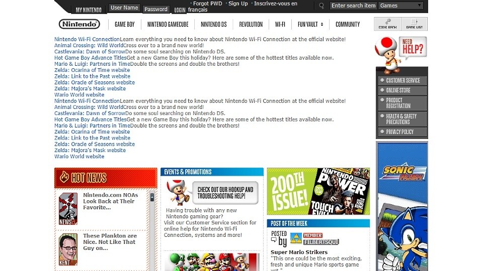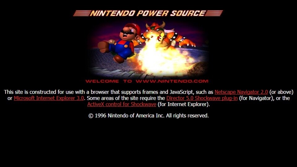 Schon vor rund 19 Jahren war Nintendo online und nutzte damals wie heute Mario als Zugpferd. Wie viele Konsolenhersteller war auch hier für Nintendo die Webseite zunächst nur für Informationen gedacht, während das Angebot dank des Siegeszuges des Internet schnell auch zum Online-Store oder zur Anlaufstelle für Support wurde. Das Design folgt einer ähnlichen Entwicklung wie die Webseite von Electronic Arts.