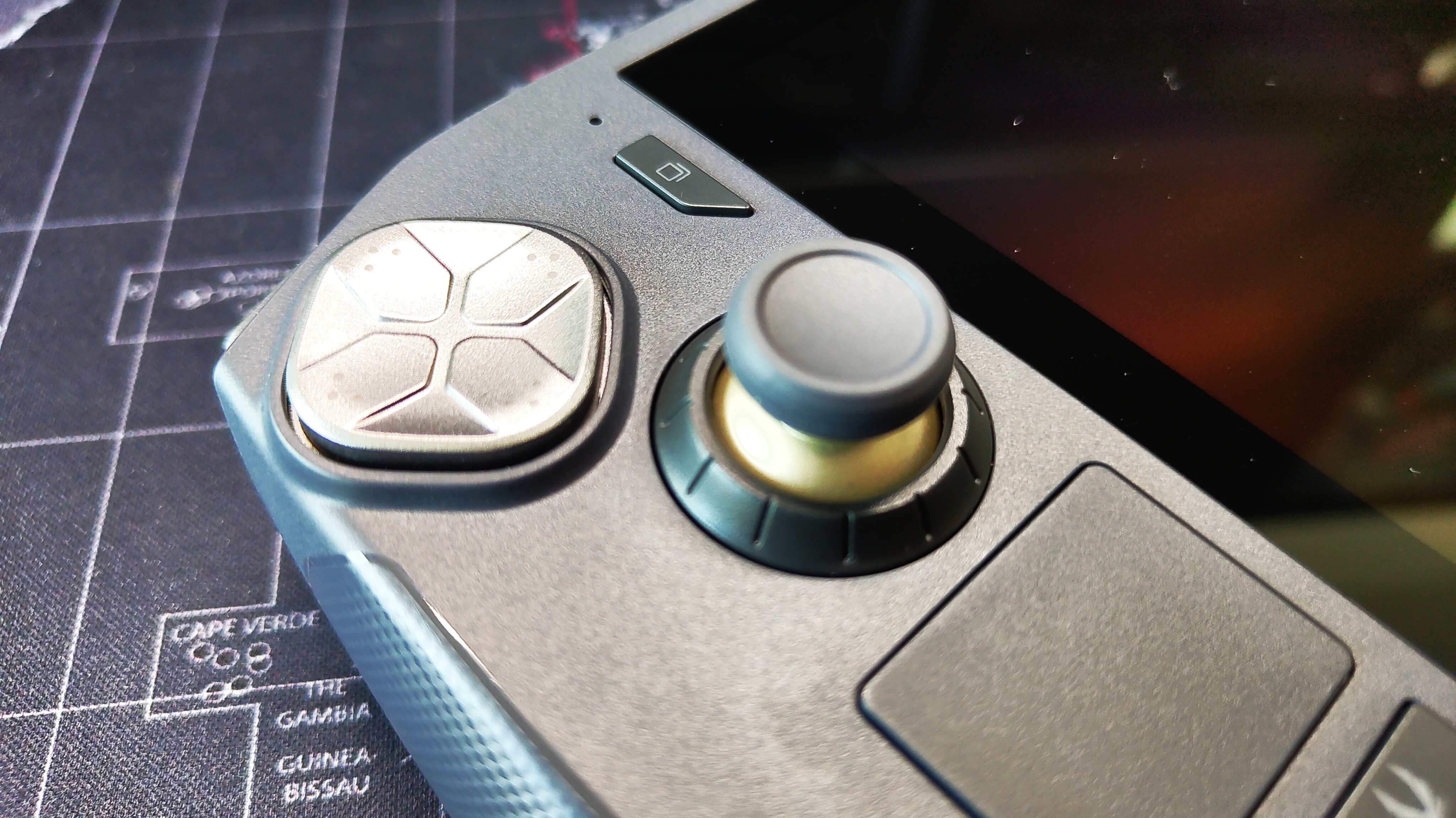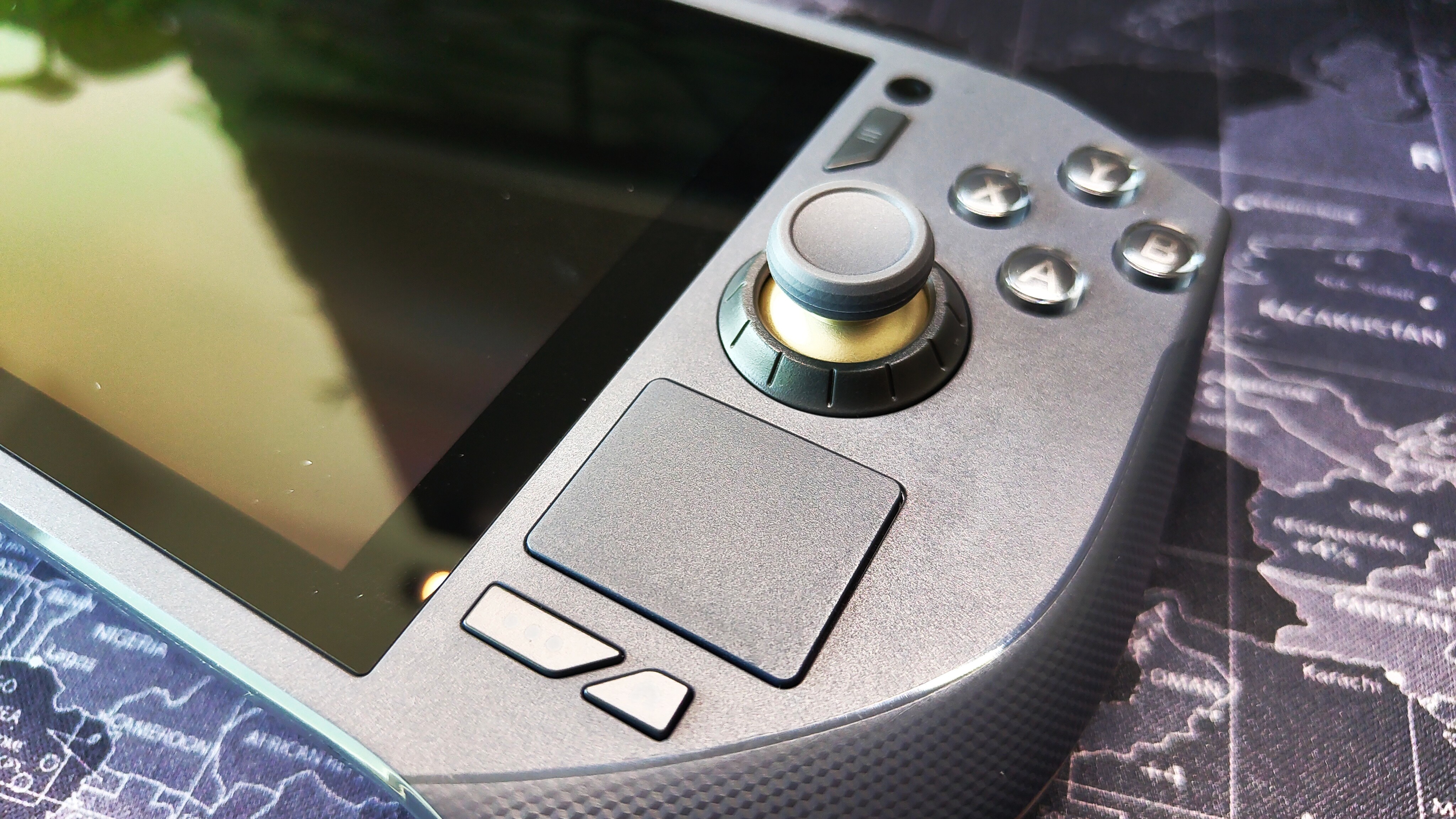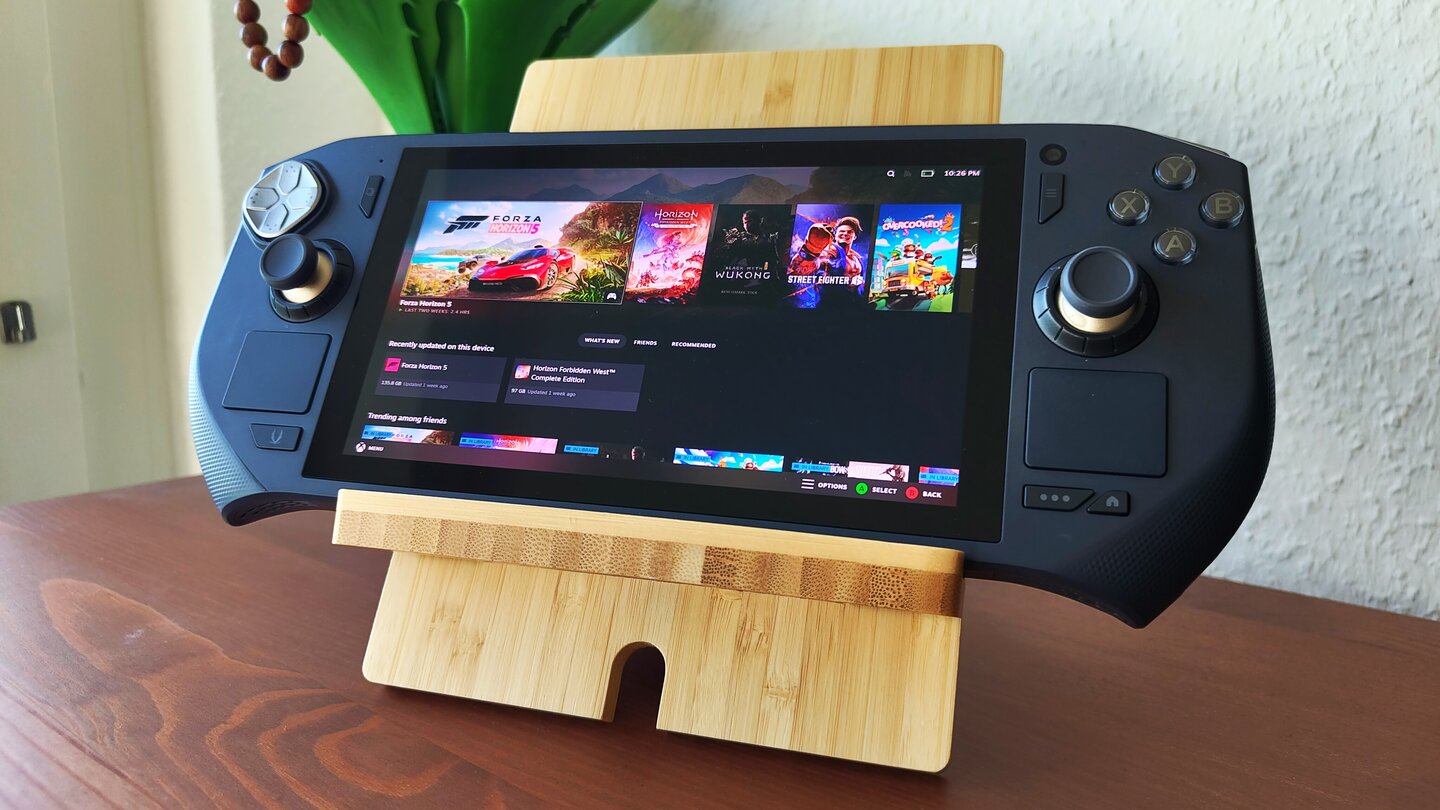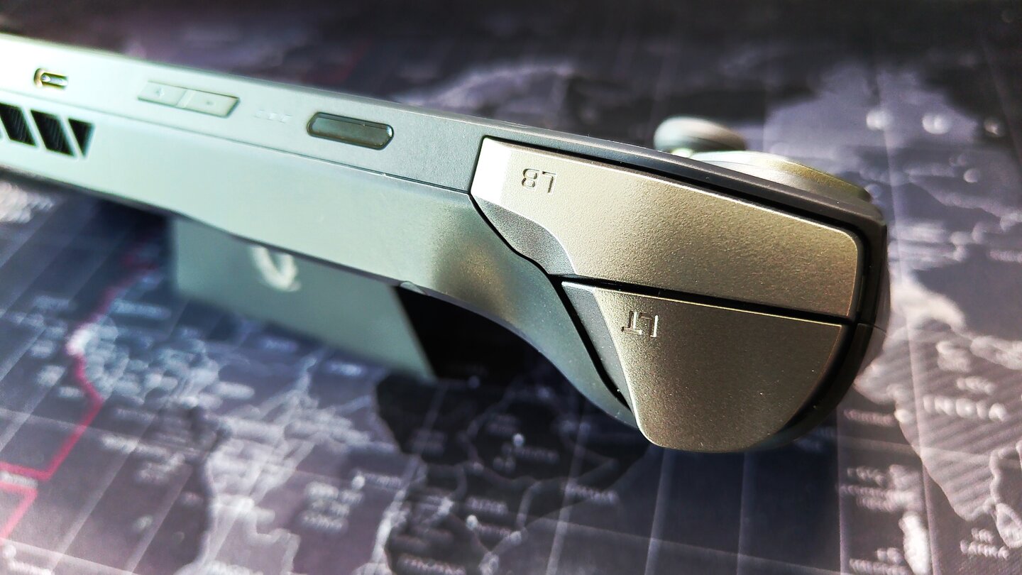 Die Position der beiden ist allerdings etwas tief, weshalb ich anfangs Zweifel am Spielekomfort hatte. Mein erster Eindruck: Die Griffe sind im unteren Bereich dicker, weshalb es sich nicht unbequem anfühlt so zu spielen. Ich bin gespannt, ob ich den Handheld auch nach einer längeren Runde Civilization VI noch komfortabel finden werde.