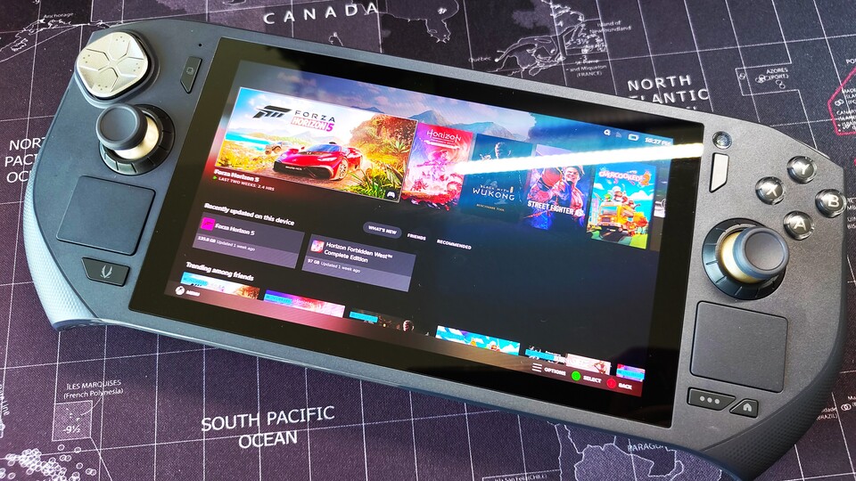 Im Gegensatz zu Asus, MSI und Lenovo hat sich Zotac dazu entschieden, ein Sieben-Zoll-AMOLED-Panel bei seinem Handheld einzubauen. Mein erster Eindruck ist sehr positiv. Farben, Kontraste und Helligkeit sind deutlich besser als bei seinen direkten Kontrahenten. Ich finde es nur etwas schade, dass die Displayränder etwas dick sind. Eventuell wäre auch ein etwas größerer Bildschirm möglich gewesen.