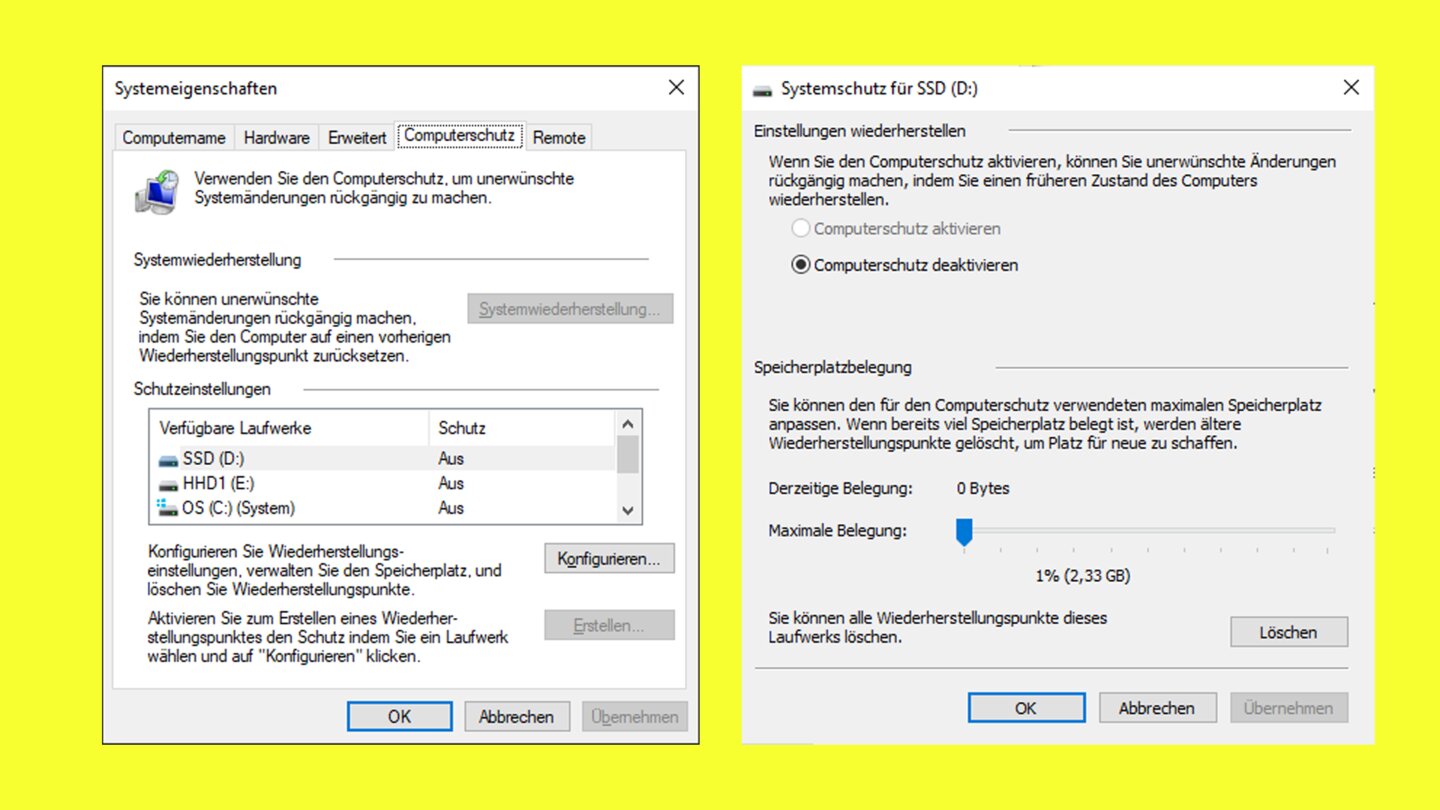 Die Wiederherstellungspunkte zur Systemwiederherstellung verbrauchen einige Gigabyte an Speicher und lassen sich leicht reduzieren.