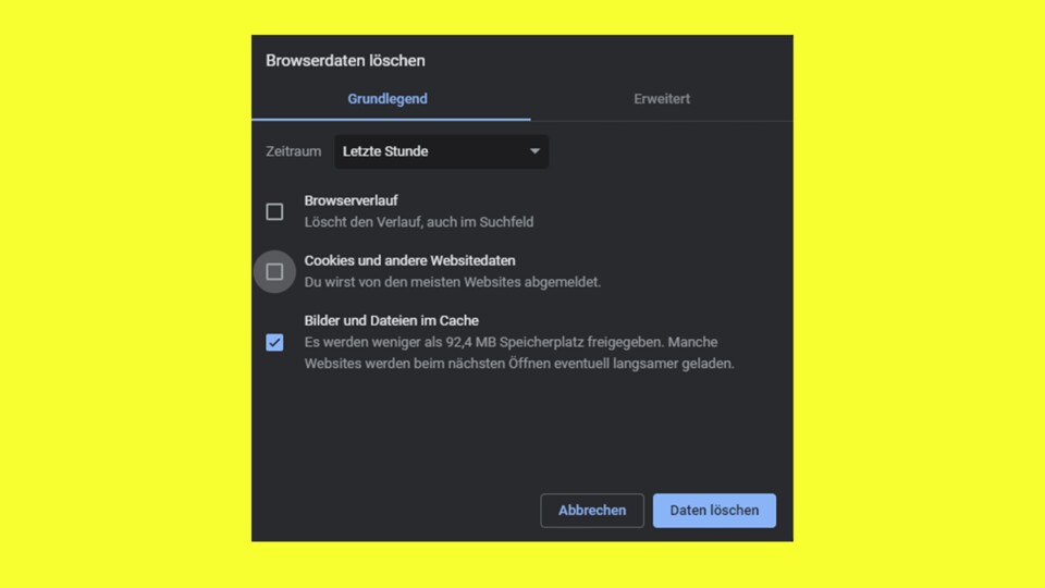 Browser zum Beispiel können über die Jahre eine Menge Daten im Cache speichern. In vielen gängigen Browsern, wie Chrome, Firefox, oder Edge reicht dazu die Tastenkombination [Shift] + [Steuerung] + [Entfernen] oder [Shift] + [Command] + [Entfernen].