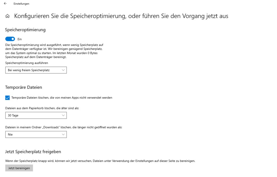 - Geht auf den Link »Konfigurieren Sie die Speicheroptimierung, oder führen Sie den Vorgang jetzt aus«